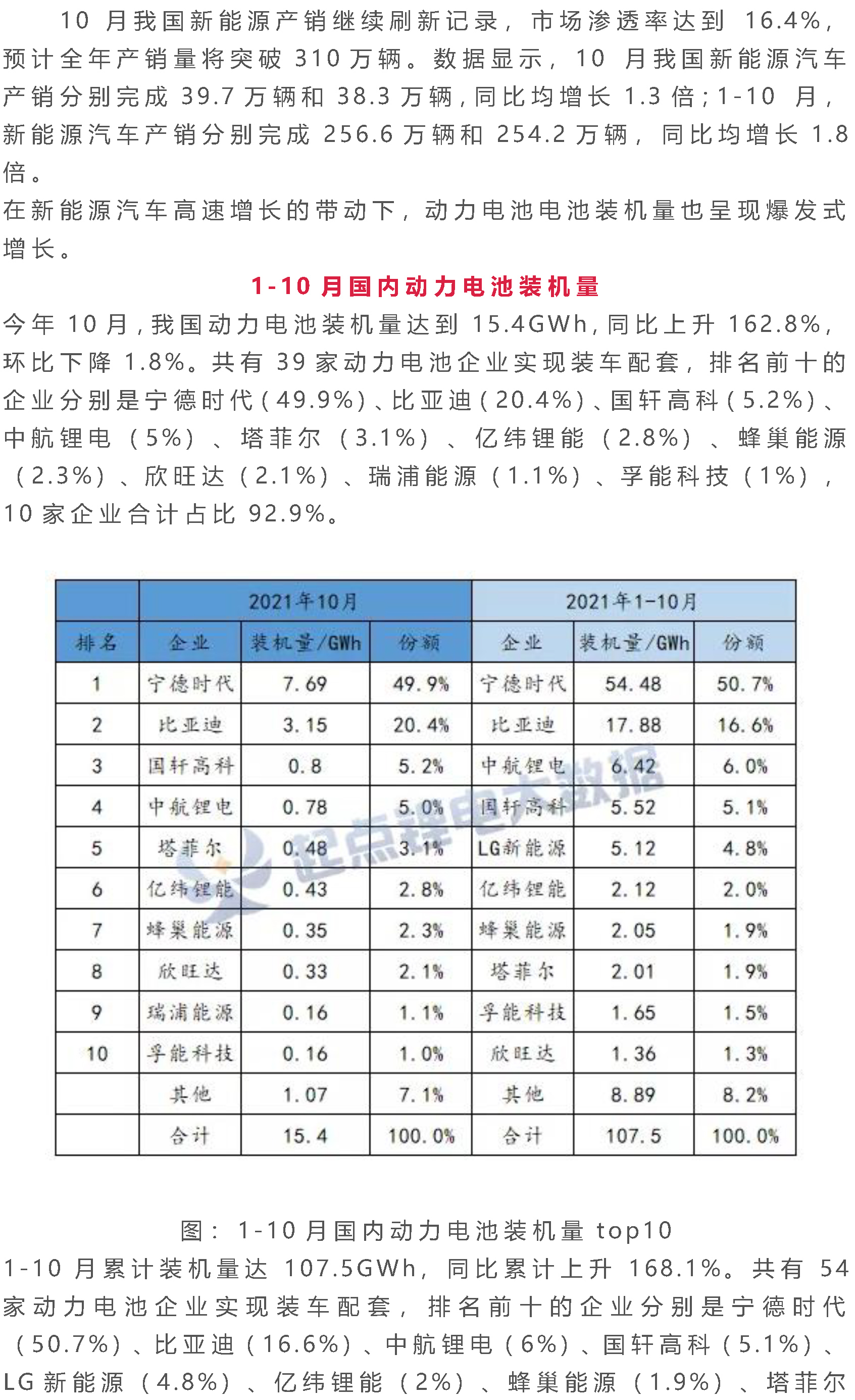據(jù)中國汽車動力電池產(chǎn)業(yè)創(chuàng)新聯(lián)盟今日早間發(fā)布的最新數(shù)據(jù)…